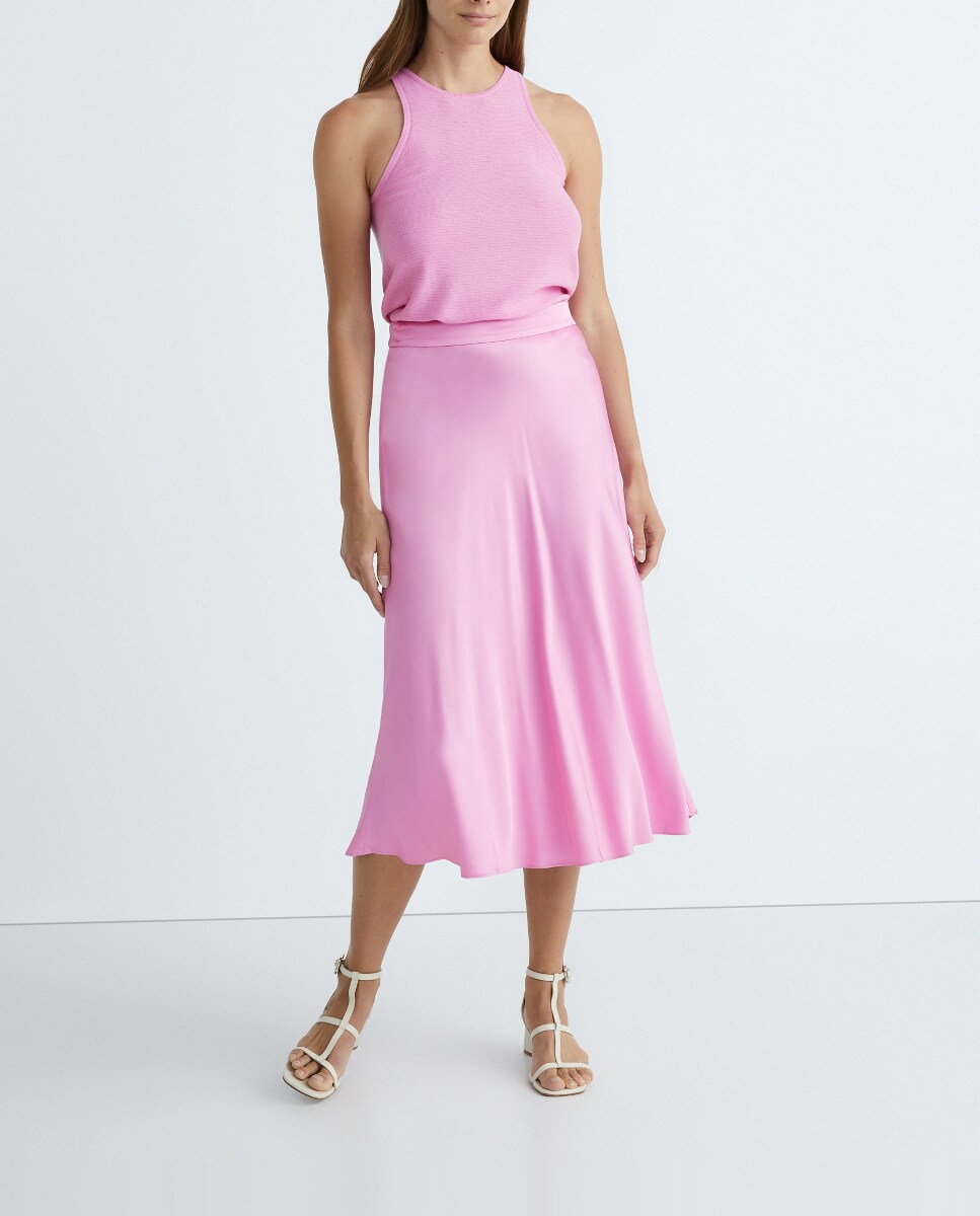 Falda midi de viscosa ligeramente satinada