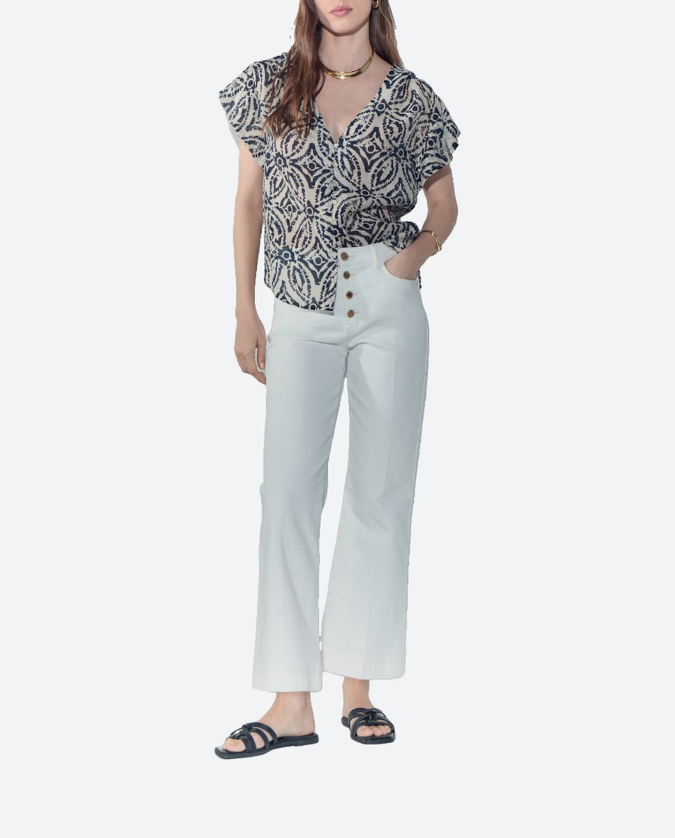 Pantalón de mujer crop flare tiro medio