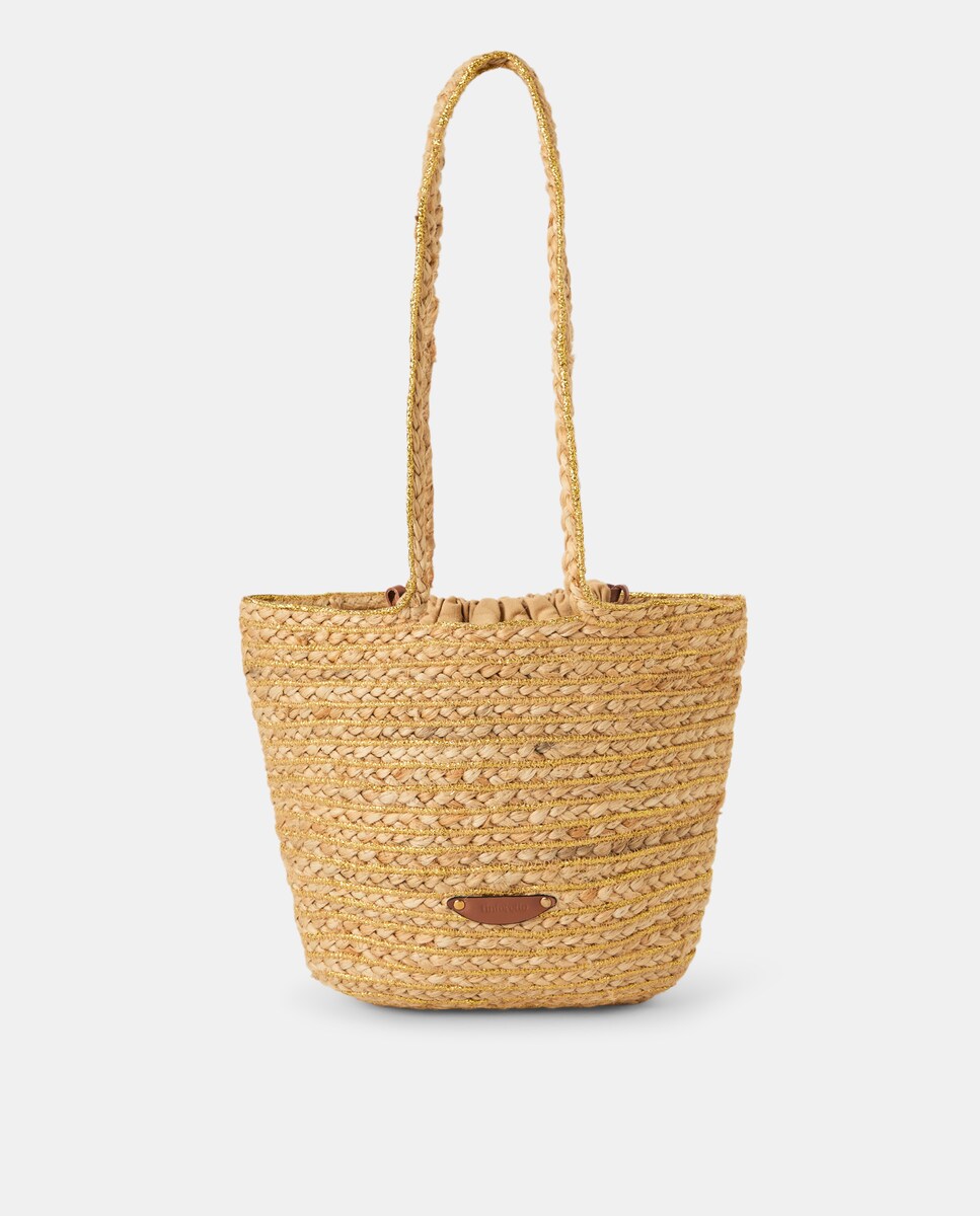 Capazo con lurex y piezas en piel