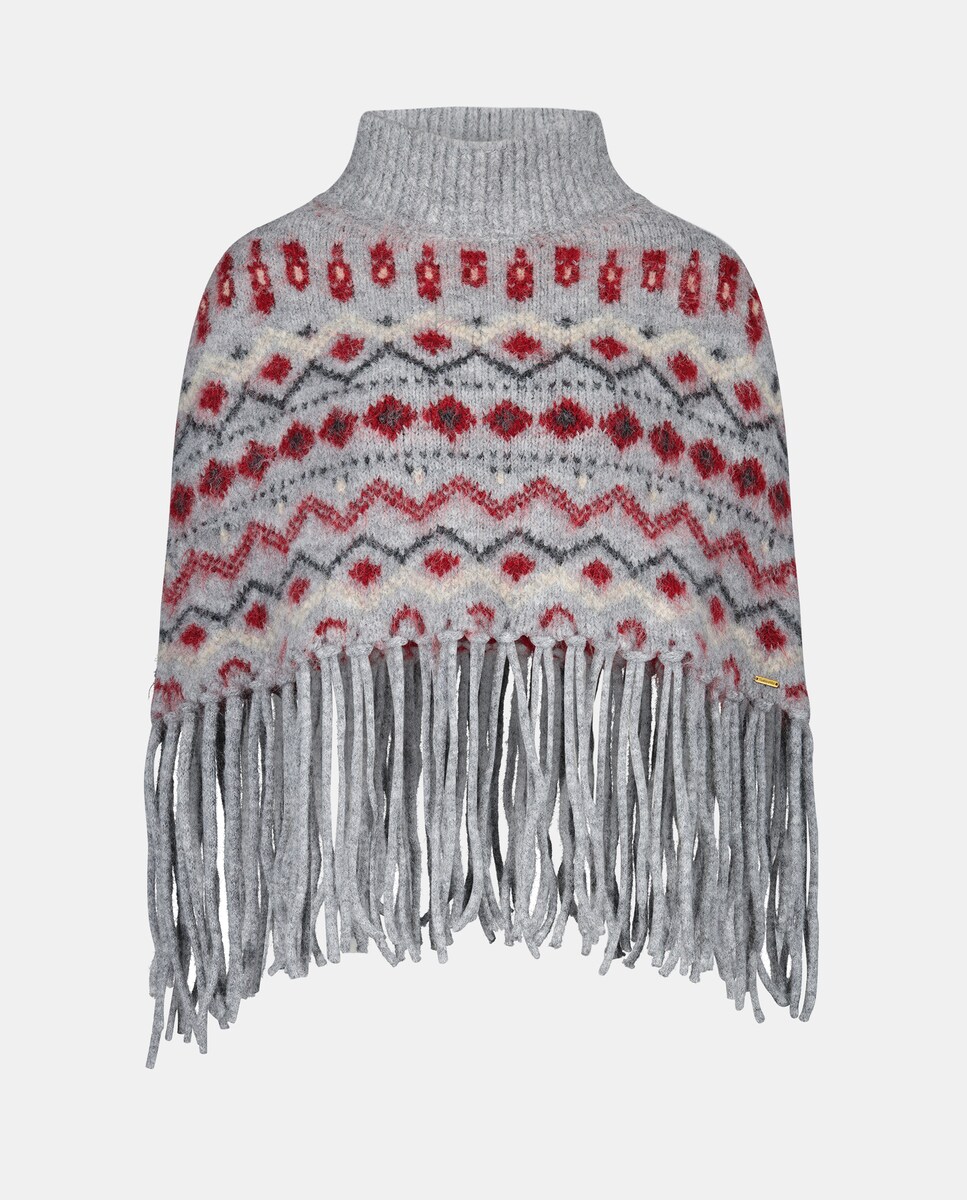 Cuello tipo poncho con grecas y flecos