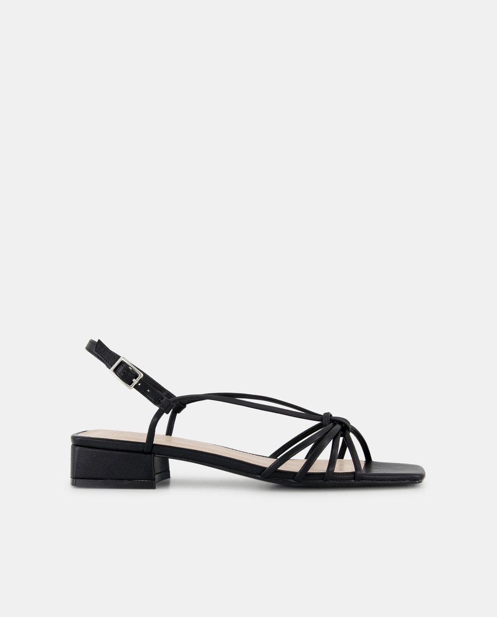 Sandalias de mujer con tacón y tiras con nudo