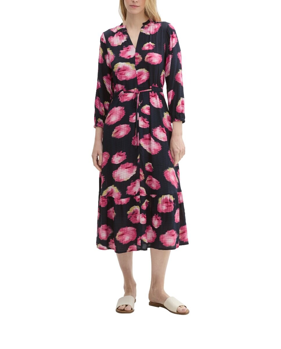 Vestido midi de mangas largas y cordón de ajuste en la cintura