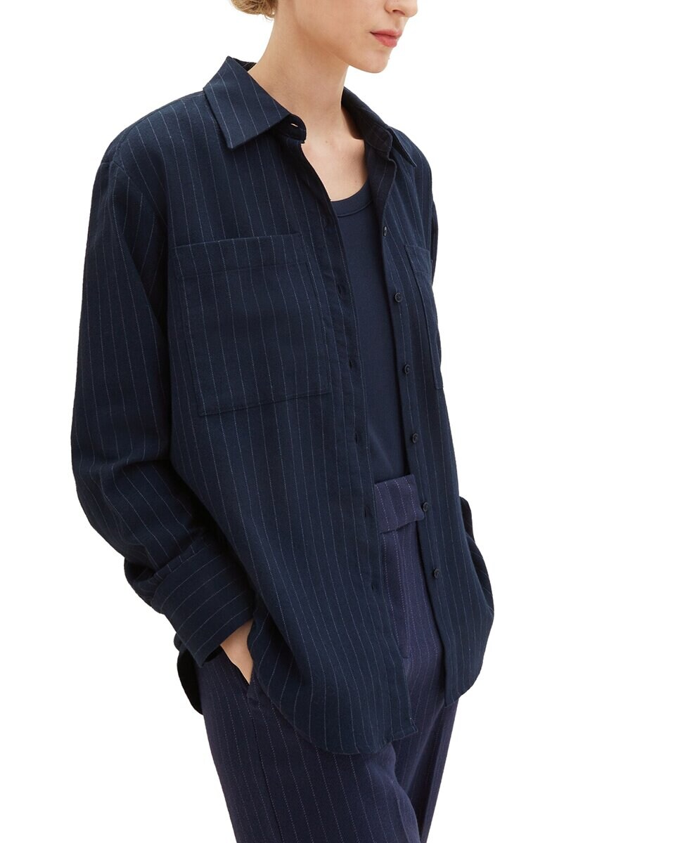 Camisa de mujer con rayas y bolsillos delanteros