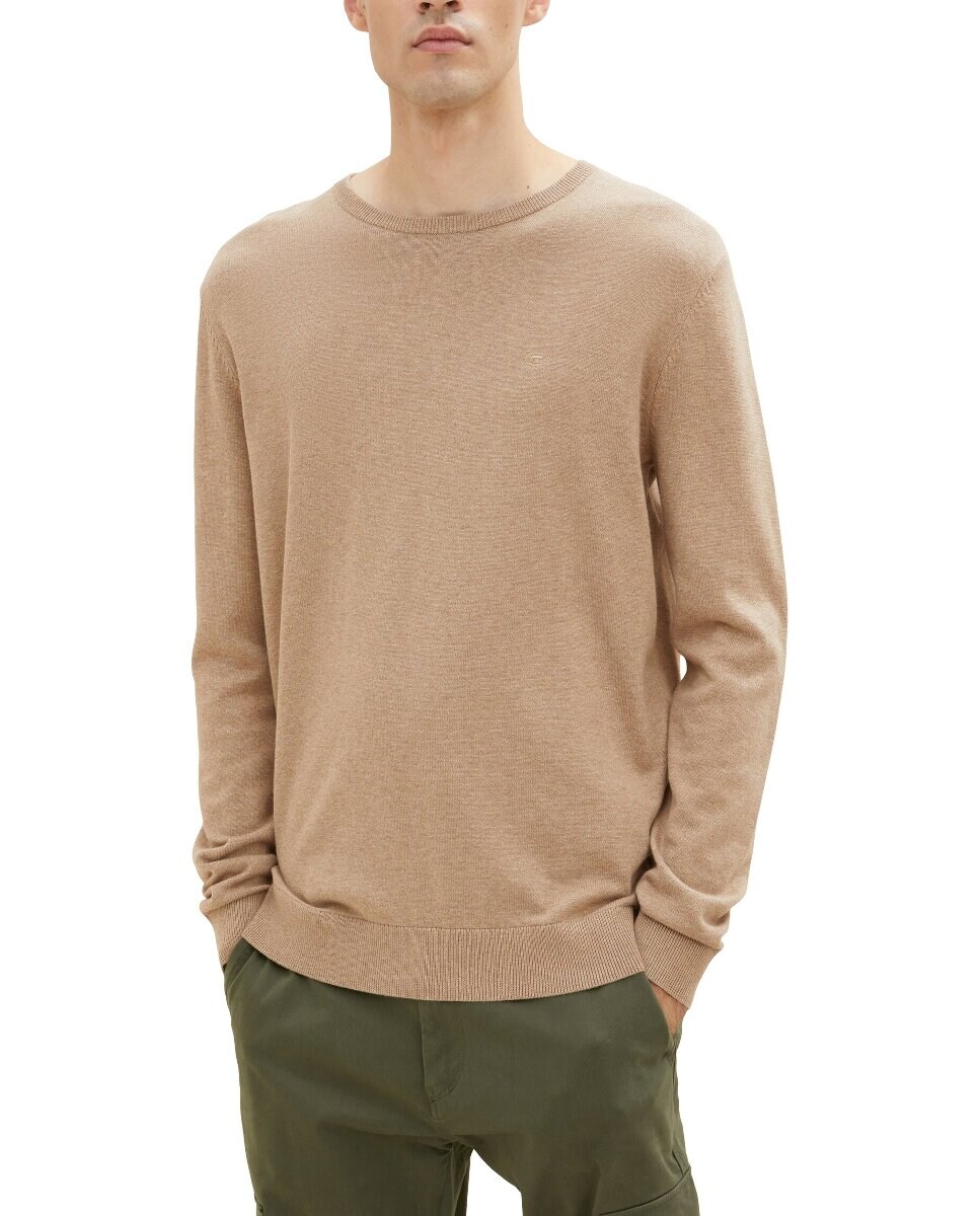 Jersey de hombre con cuello redondo y ribetes de canalé