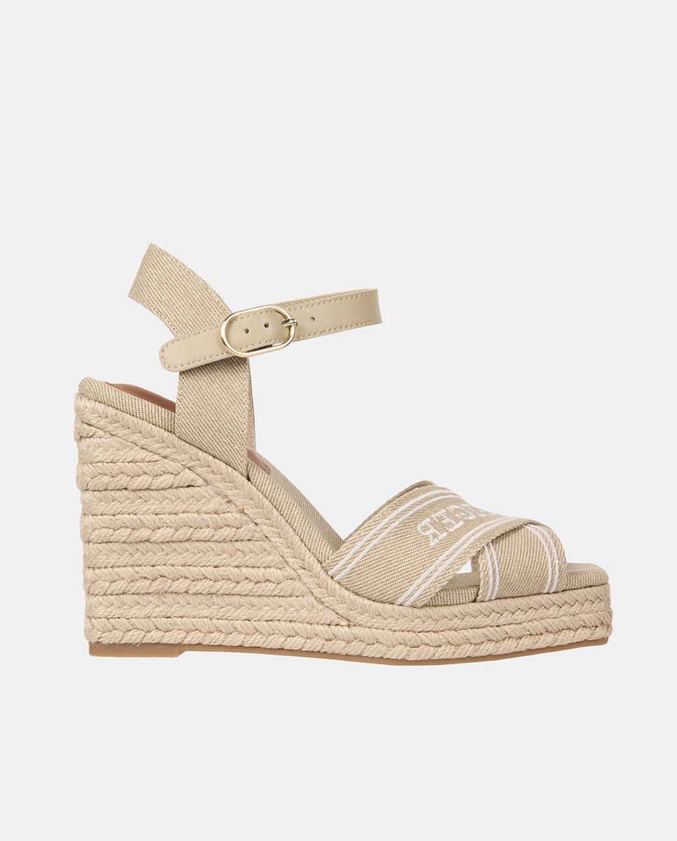 Sandalia de cuña alta de esparto con logo
