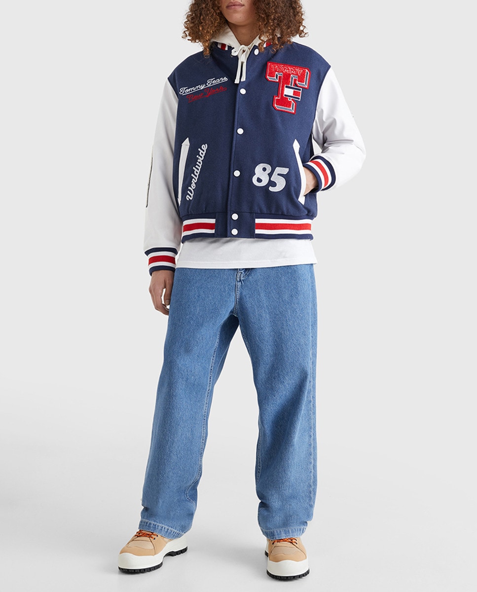 Cazadora de hombre universitaria con manga larga y cuello redondo