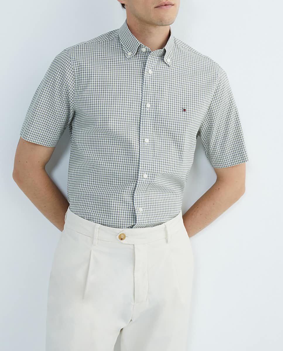 Camisa de hombre de manga corta regular fit de cuadros multicolor