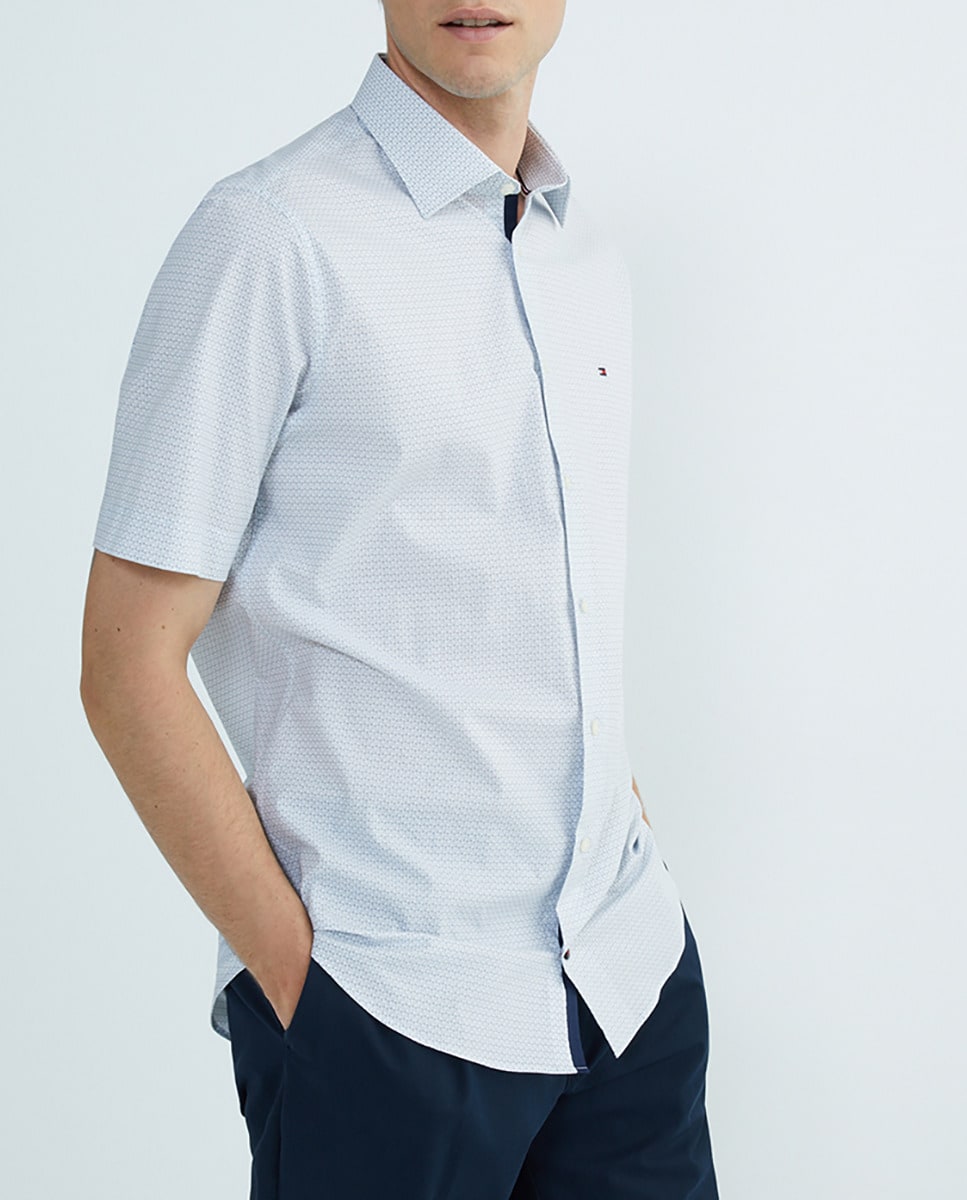 Camisa de hombre de manga corta en blanco con microestampado