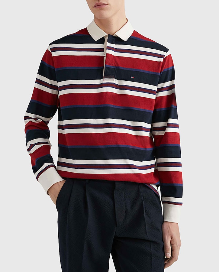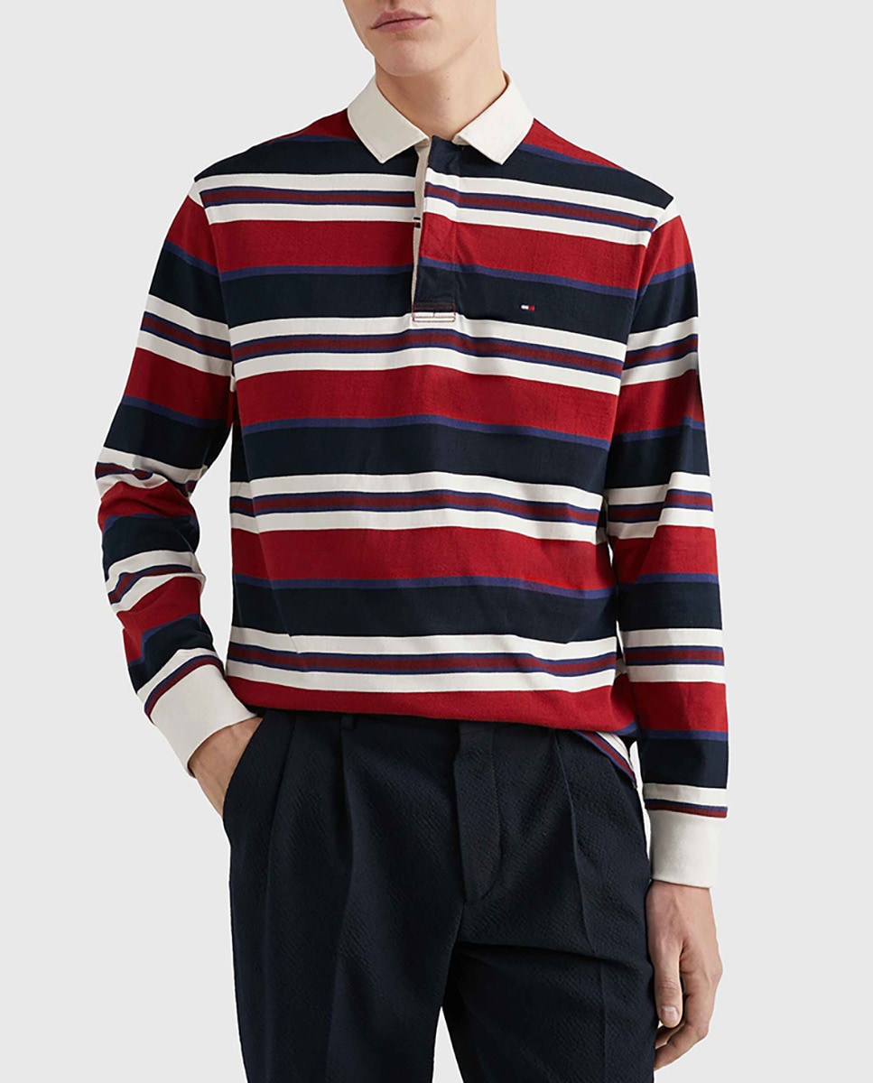Polo Rugby rayas azul marino y rojo tallas grandes