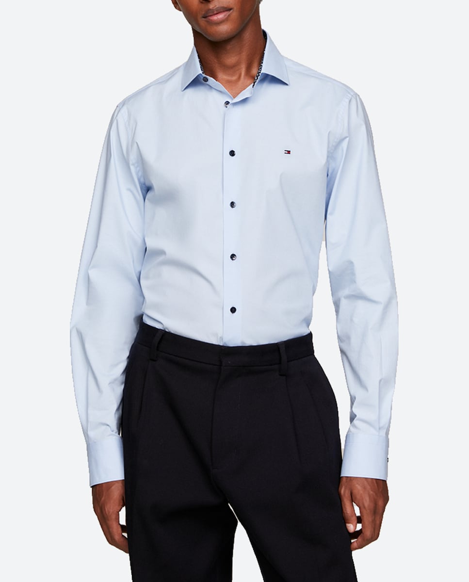 Camisa de hombre de manga larga estampado liso