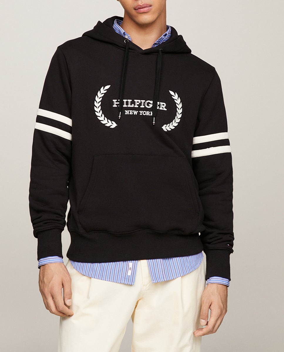 Sudadera con capucha y branding grande de laurel a contraste