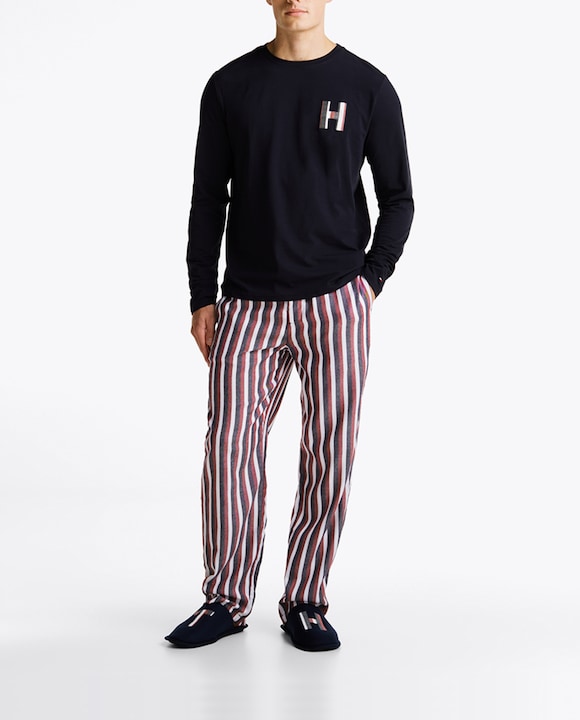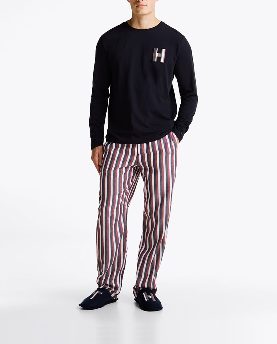 Pijama largo de hombre en franela y camiseteta con zapatillas