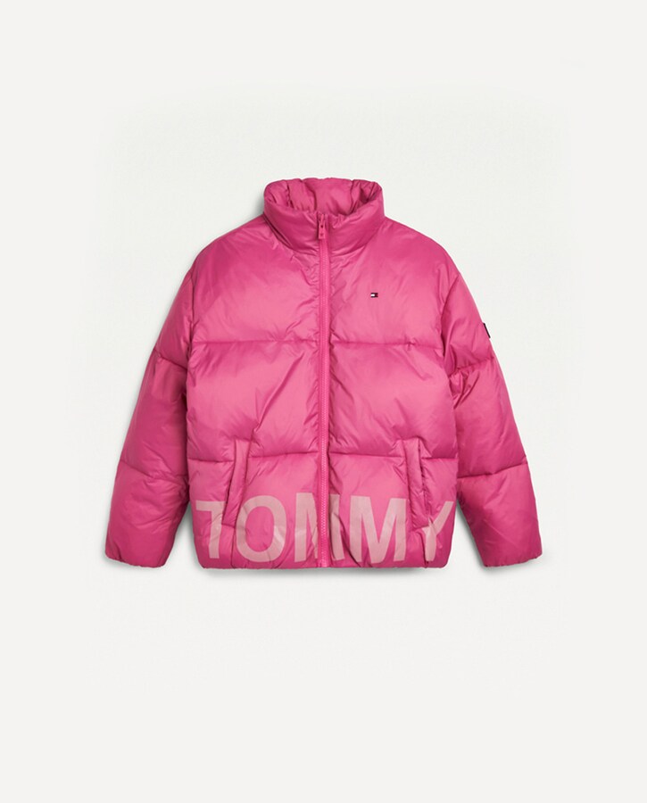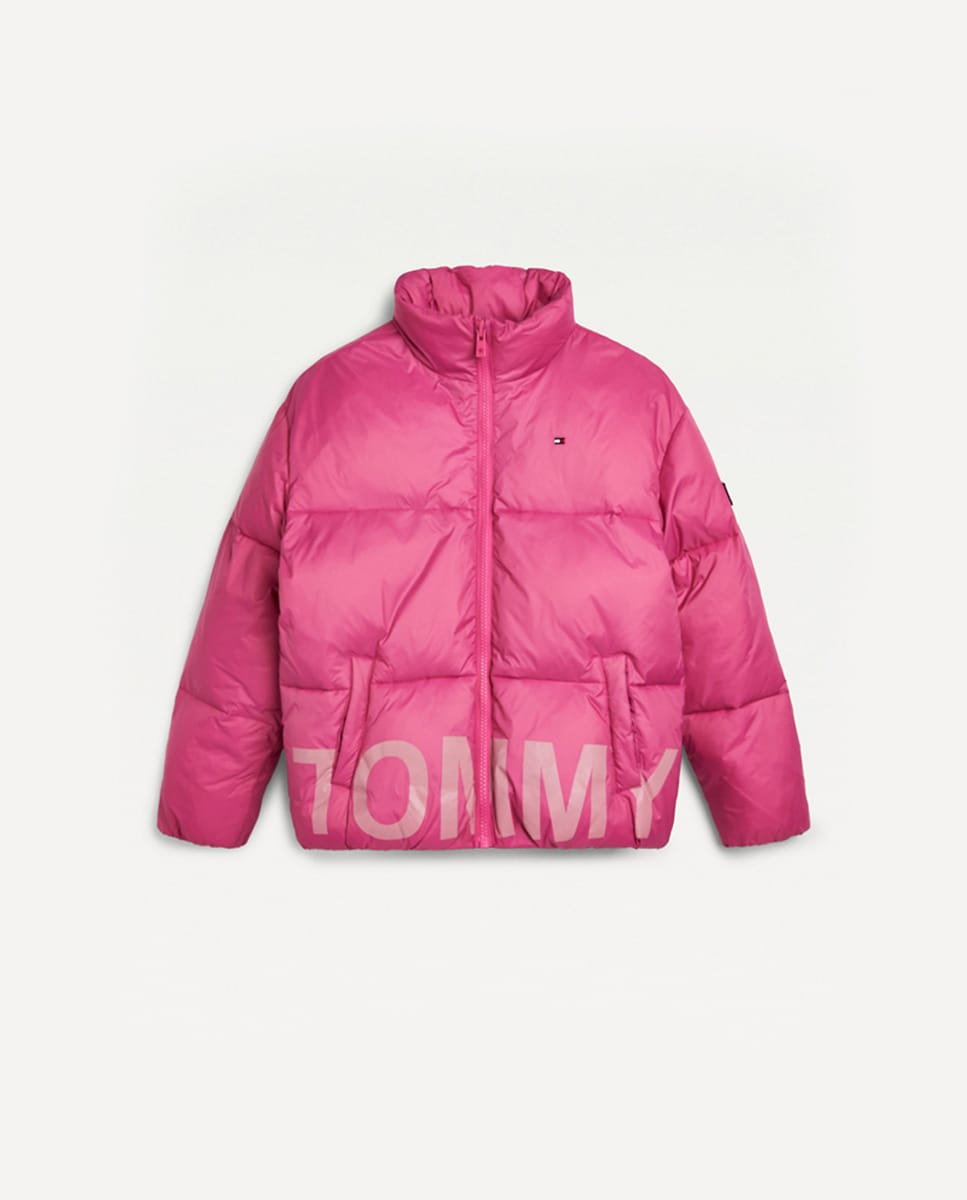 Parka acolchada de niña en fucsia con macro logo estampado