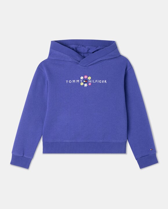 Sudadera de niña en azul con flores bordadas