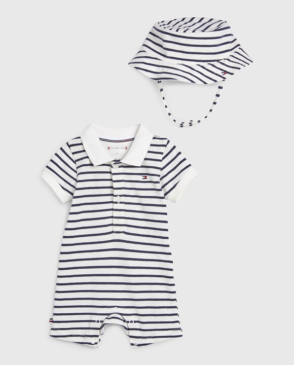 Conjunto de bebé niño de body y gorrito en azul marino