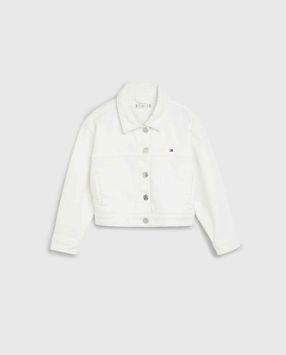 Cazadora vaquera de bebé niña tipo crop con logo bandera