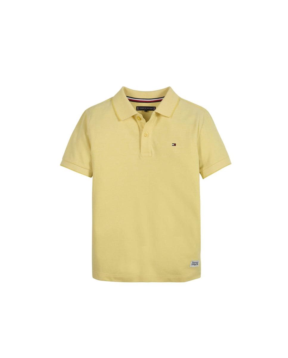Polo de niño liso manga corta con logo bandera bordado