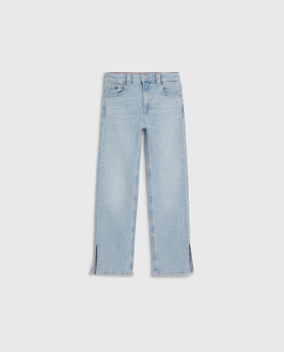 Vaquero de niña recto con aperturas laterales en los bajos y logo tommy en el bolsillo trasero