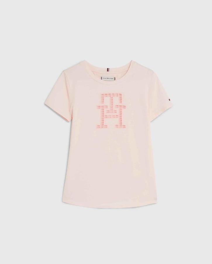 Camiseta de niña de manga corta con cuello redondo y logo TH calado