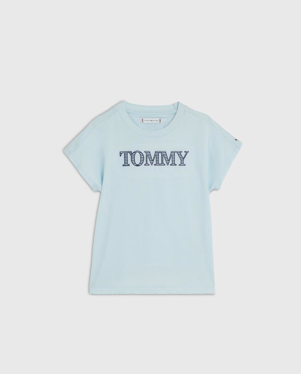 Camiseta de niña con manga corta, cuello redondo y logo Tommy