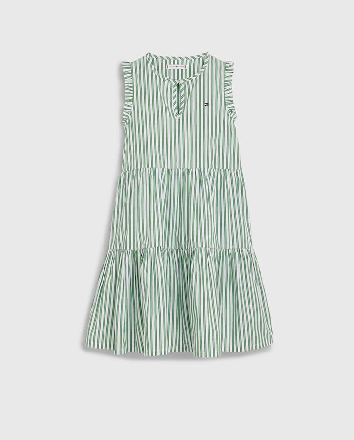 Vestido estampado a rayas con cuello redondo y logo bandera bordado