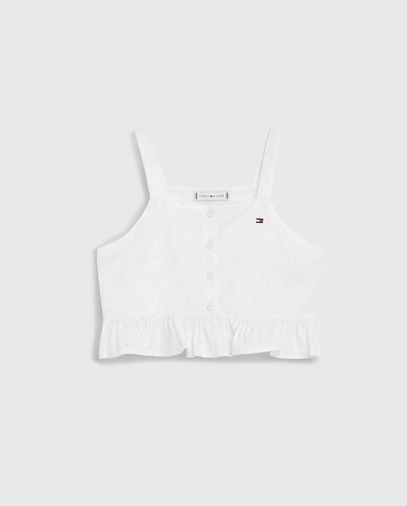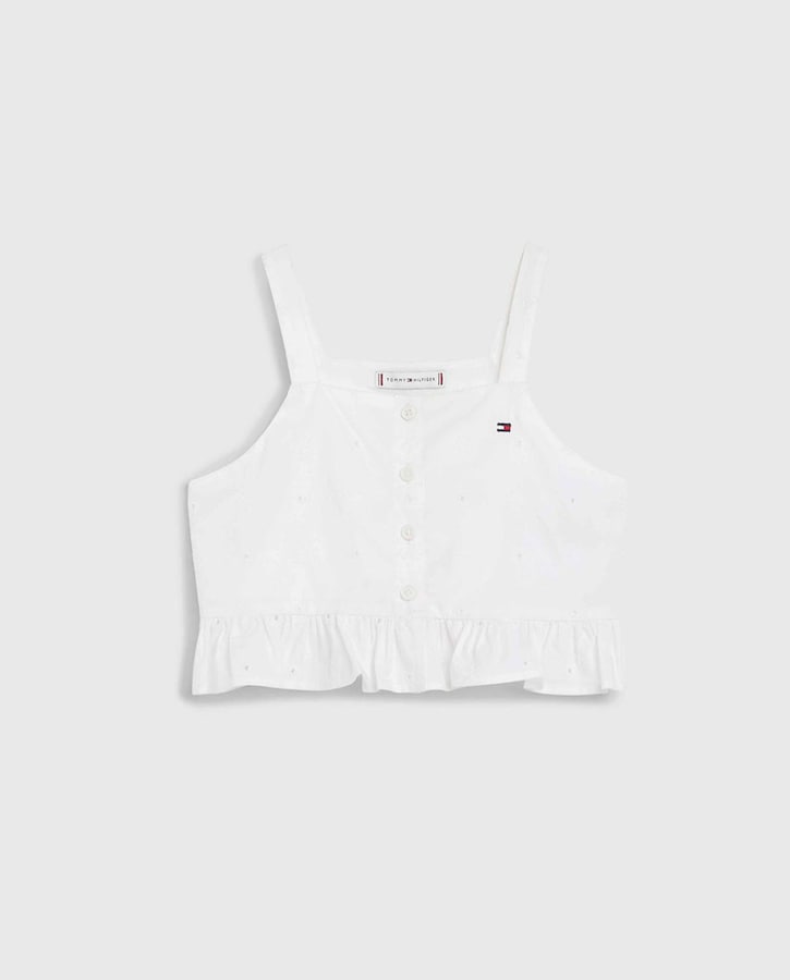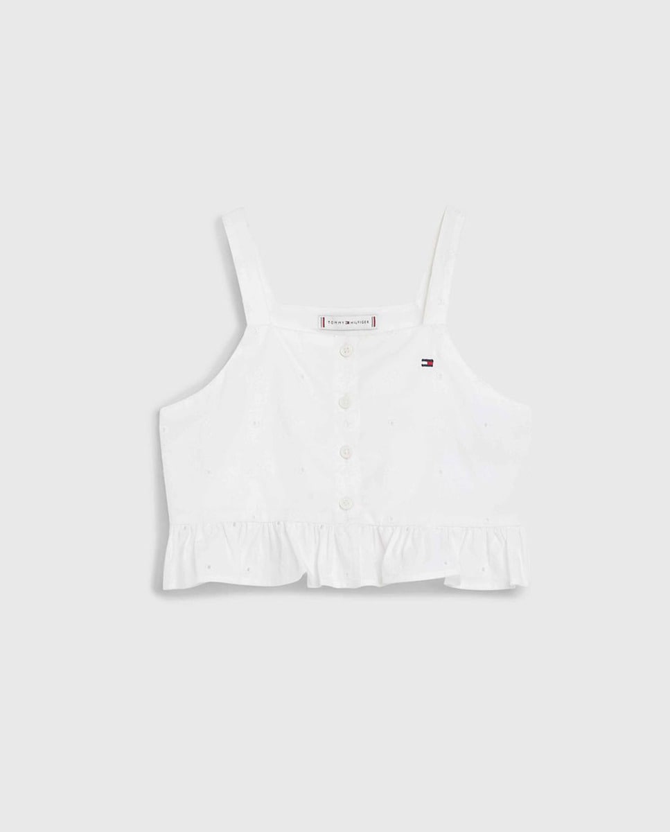 Top de niña abotonado con tirantes y logo bandera bordado