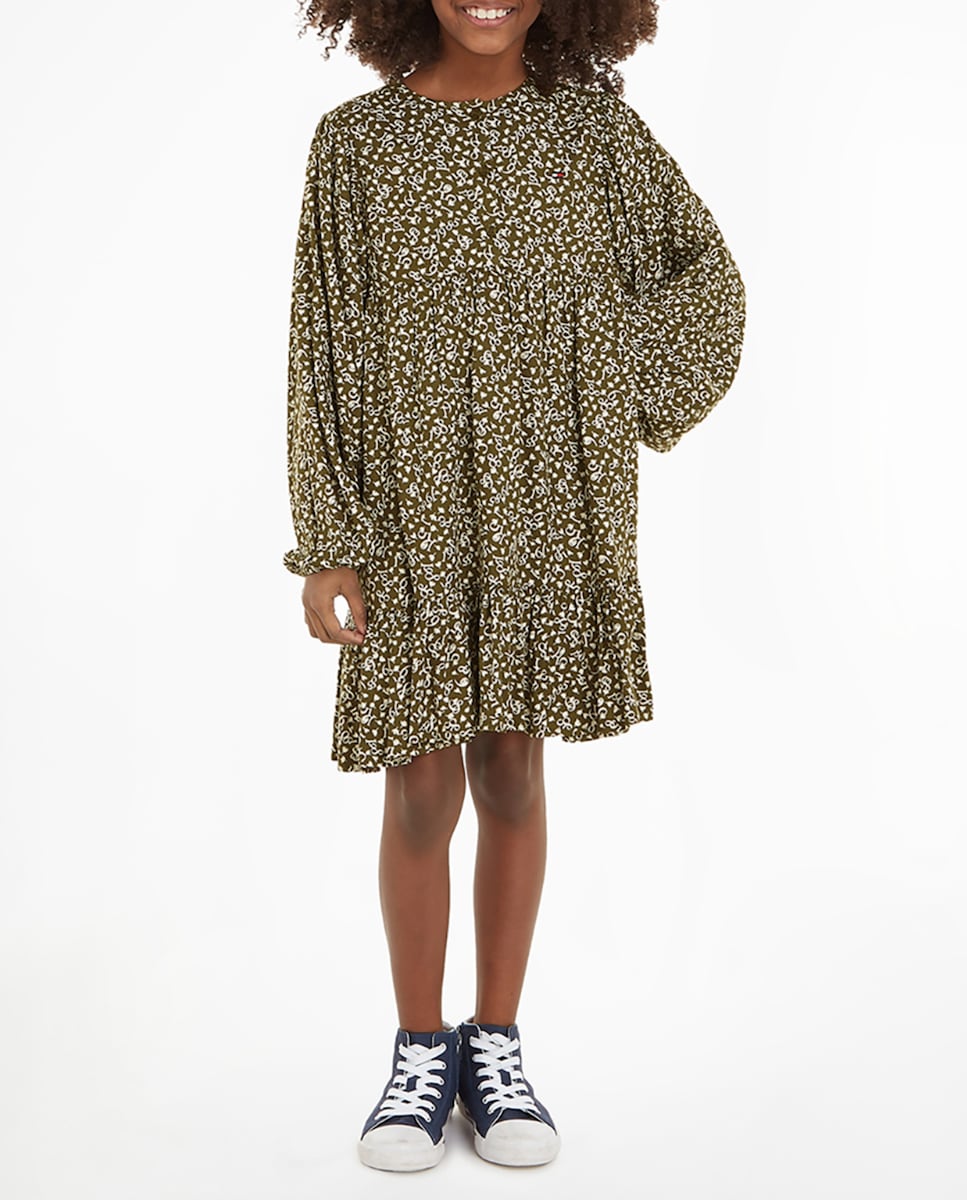 Vestido de niña de cuello redondo y manga larga