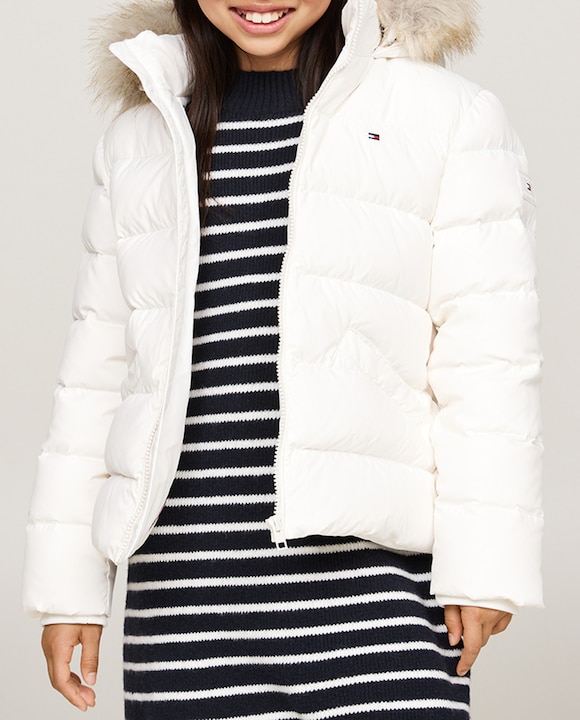 Chaqueta acolchada de niña con capucha y cremallera