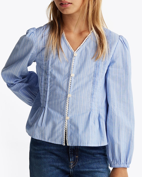 Camisa de niña de manga larga con cuello de pico