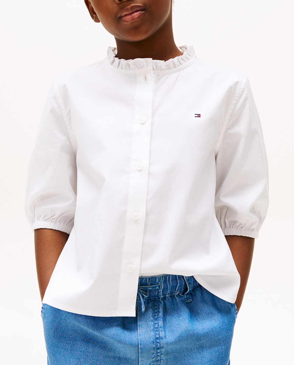 Camisa de niña manga corta lisa de cuello mao y manga francesa