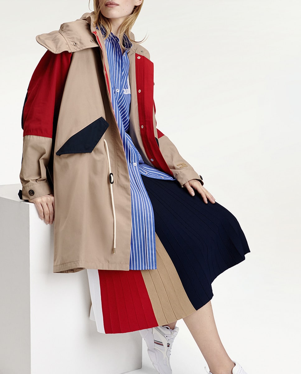 Parka fina tricolor y con capucha