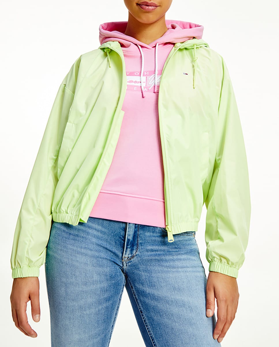 Cortavientos de mujer con cremallera y goma en la cintura.