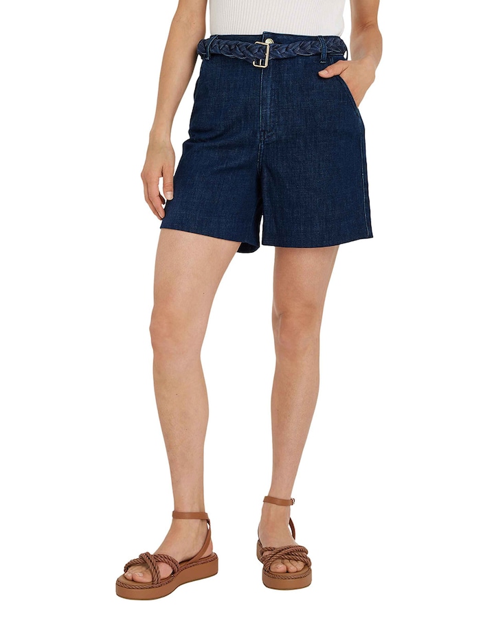 Short vaquero de mujer con cinturón y tiro alto