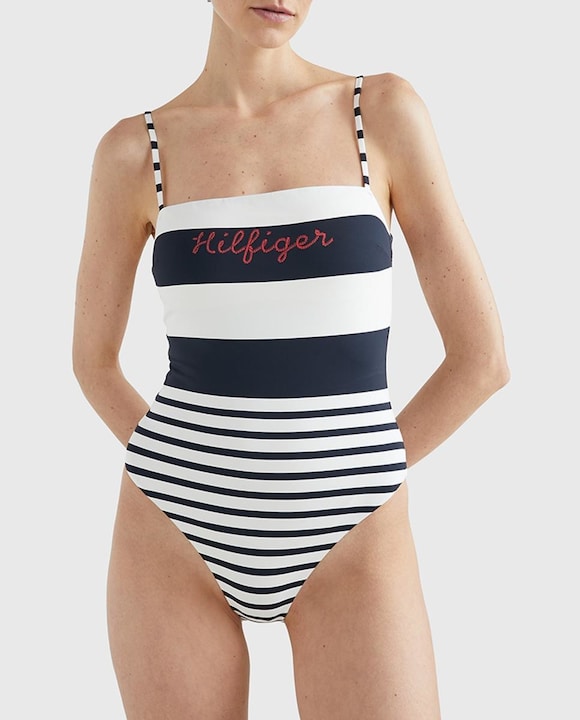 Bañador bandeau liso con logo