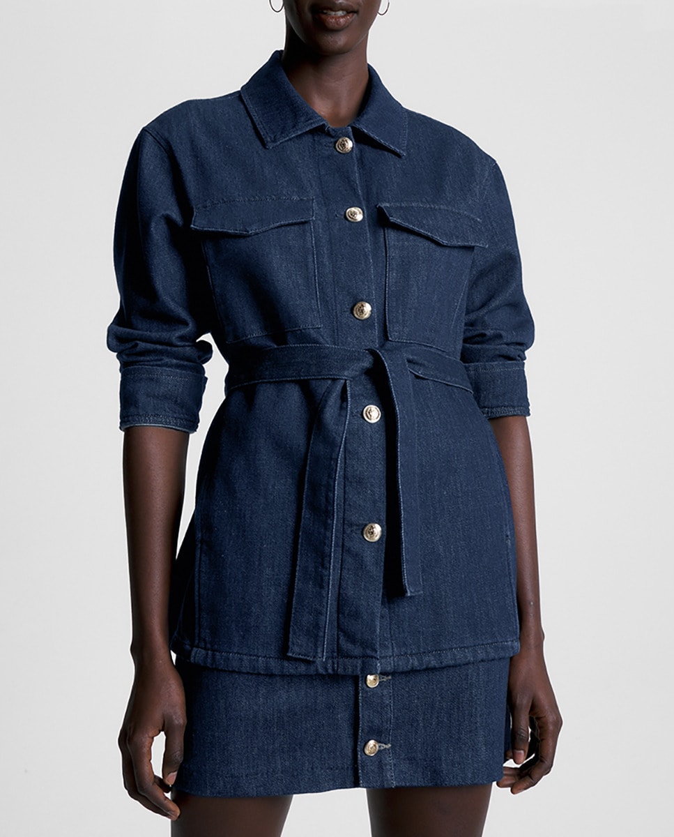 Cazadora de mujer con botones y cinturón