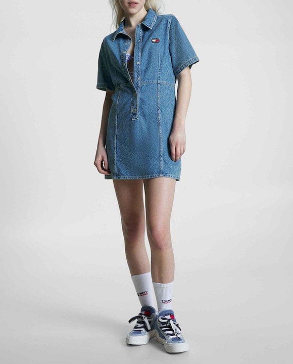 Vestido vaquero de manga corta y fit slim