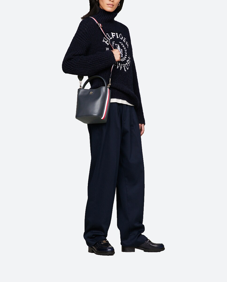 Bolso bucket Tommy Hilfiger con banda corporativa.
