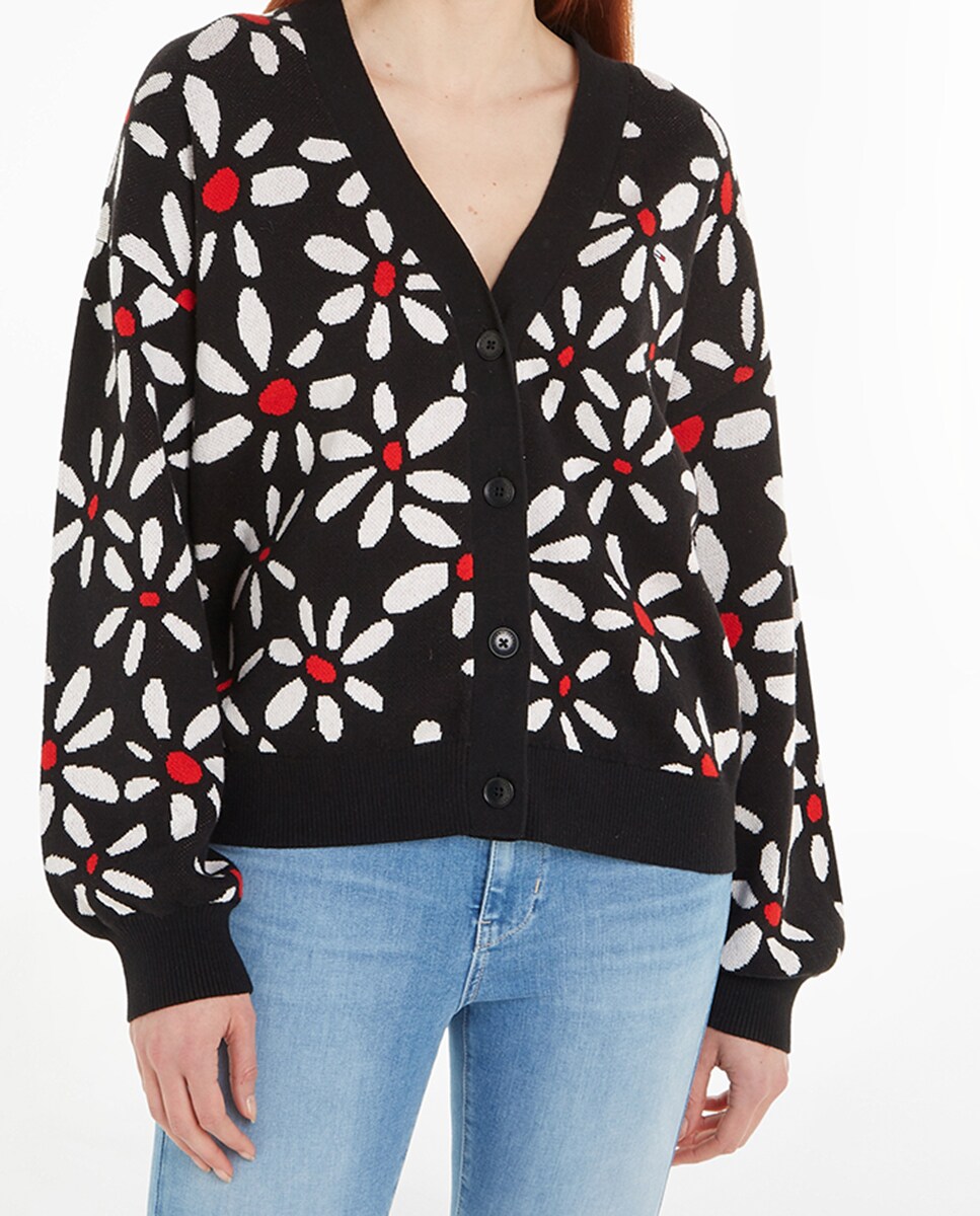 Cardigán de mujer con estampado floral y cuello en v