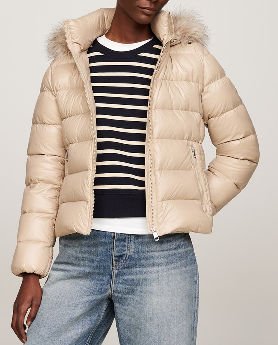 Chaqueta plumífera de mujer con cierre de cremallera y capucha