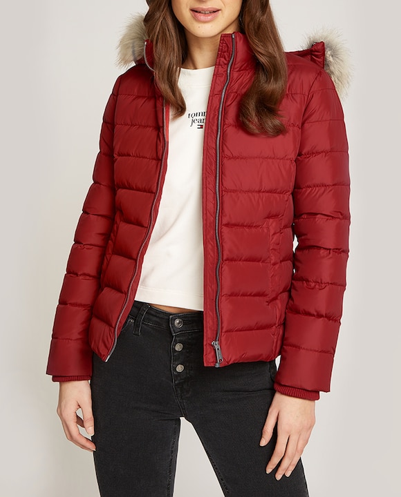 Plumífero de mujer con capucha de pelo sintético