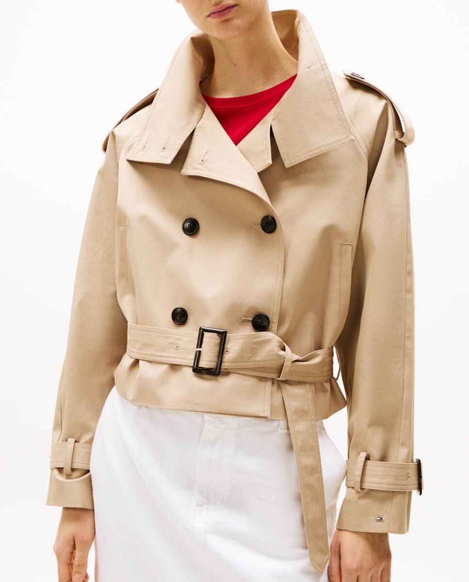 Gabardina corta de mujer con cinturón