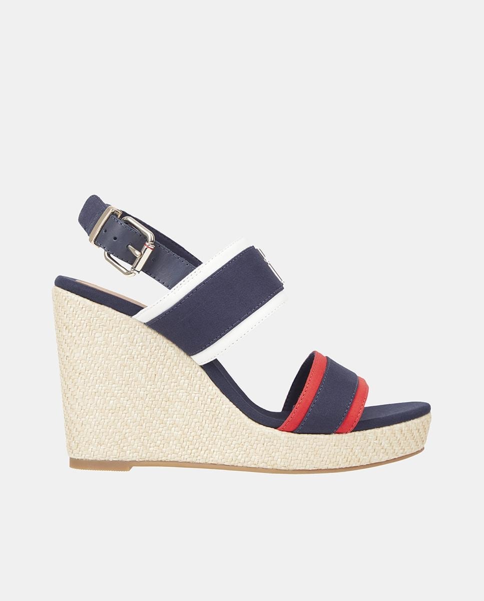 Alpargatas de mujer en azul marino con cuña tiras logotipadas y pulsera al tobillo