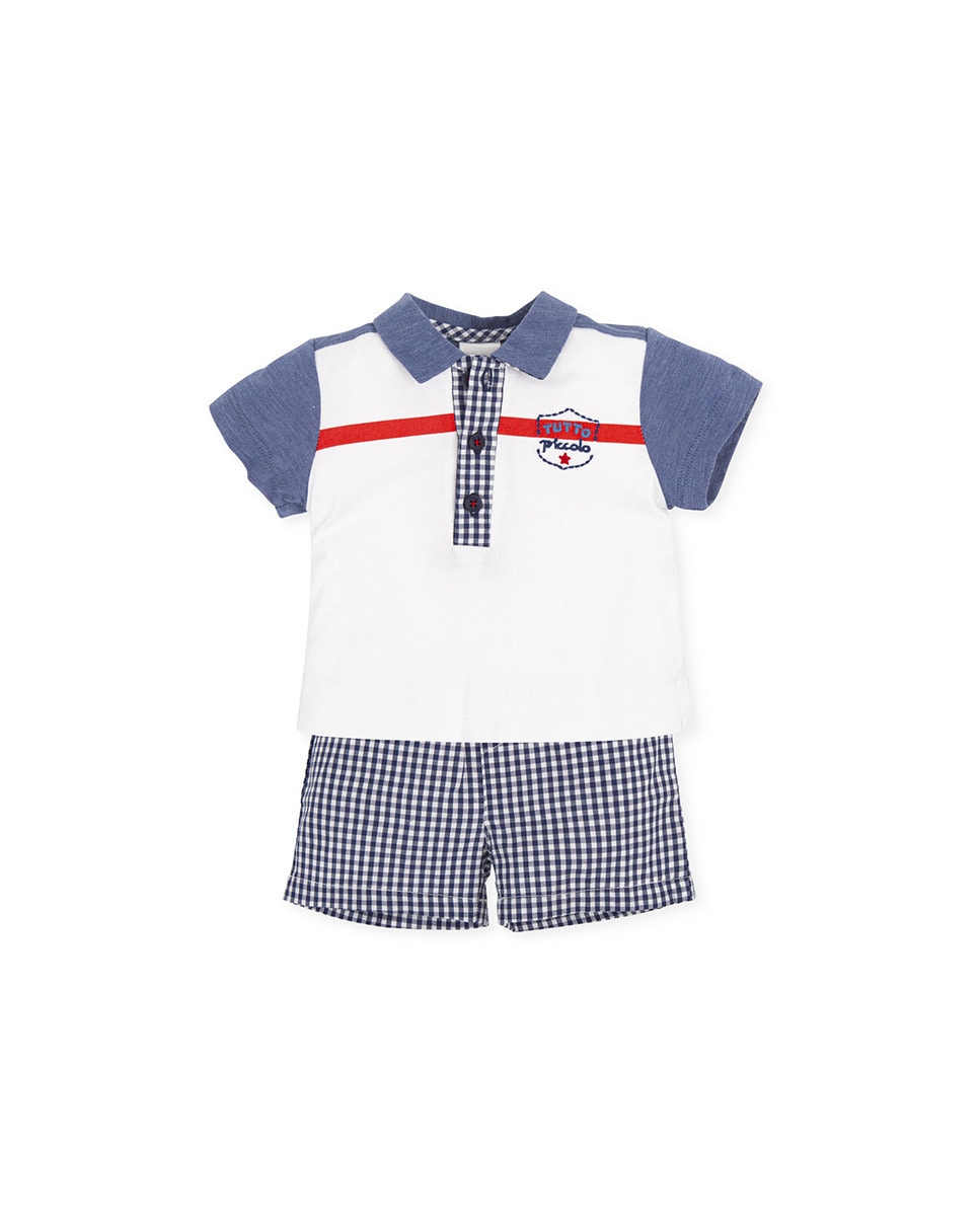 Conjunto de bebé niño de manga corta en punto liso flamé