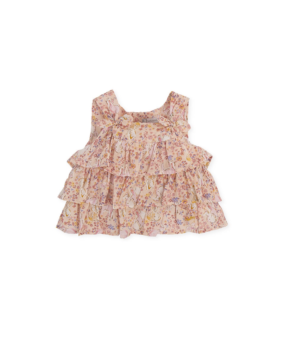 Top de bebé niña sin manga con estampado de elefantes