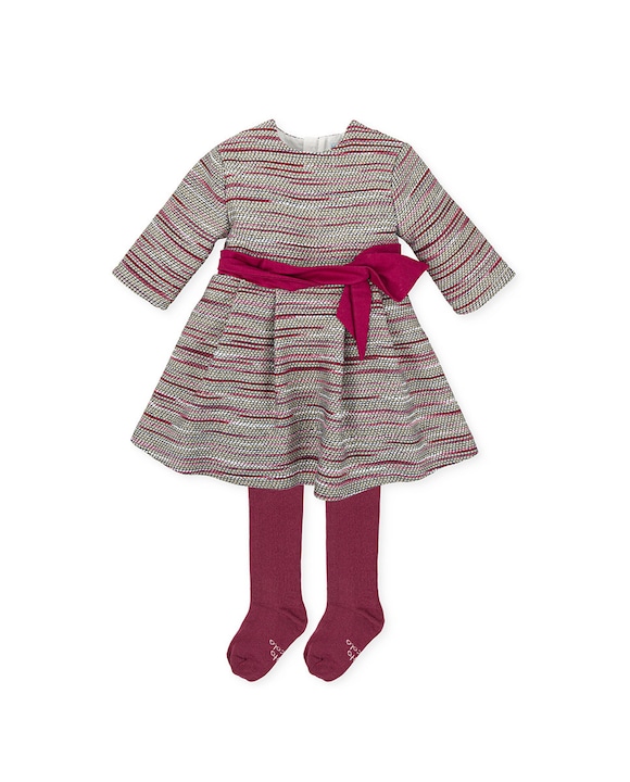 Vestido con leotardos de niña en carmín con abertura trasera con cremallera