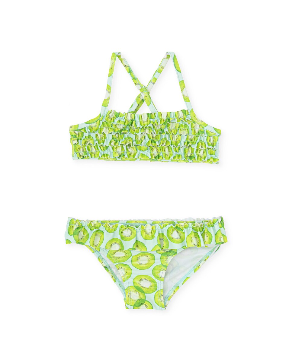 Bikini de niña lima con detalle de volantes