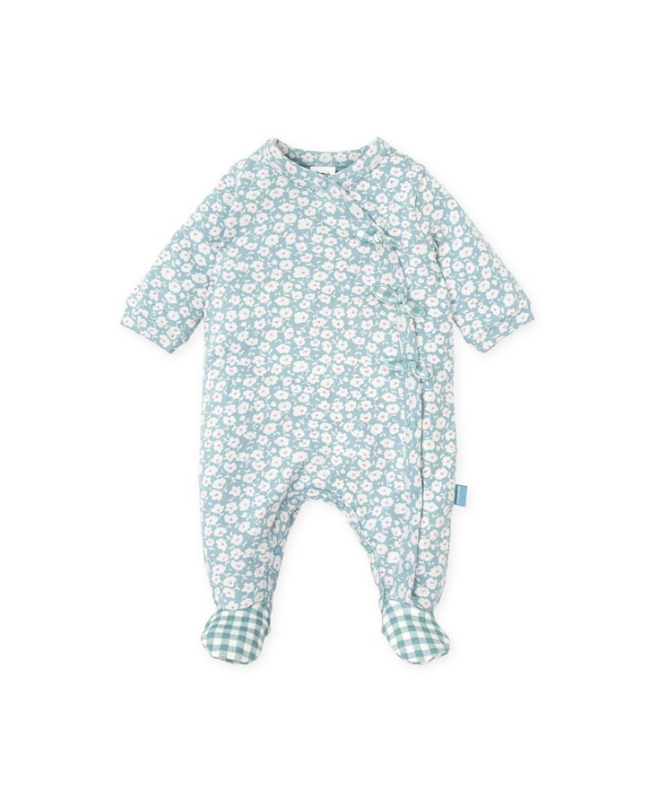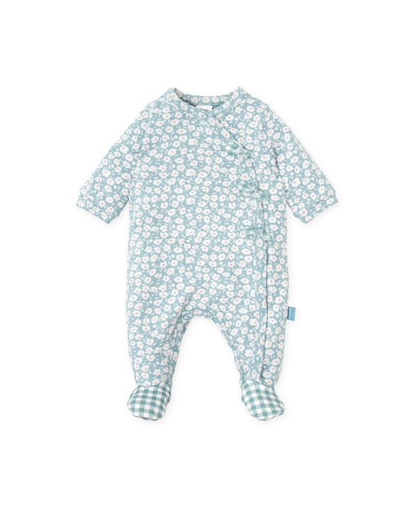 Pelele de bebé niña largo con pie verde con estampado de flores