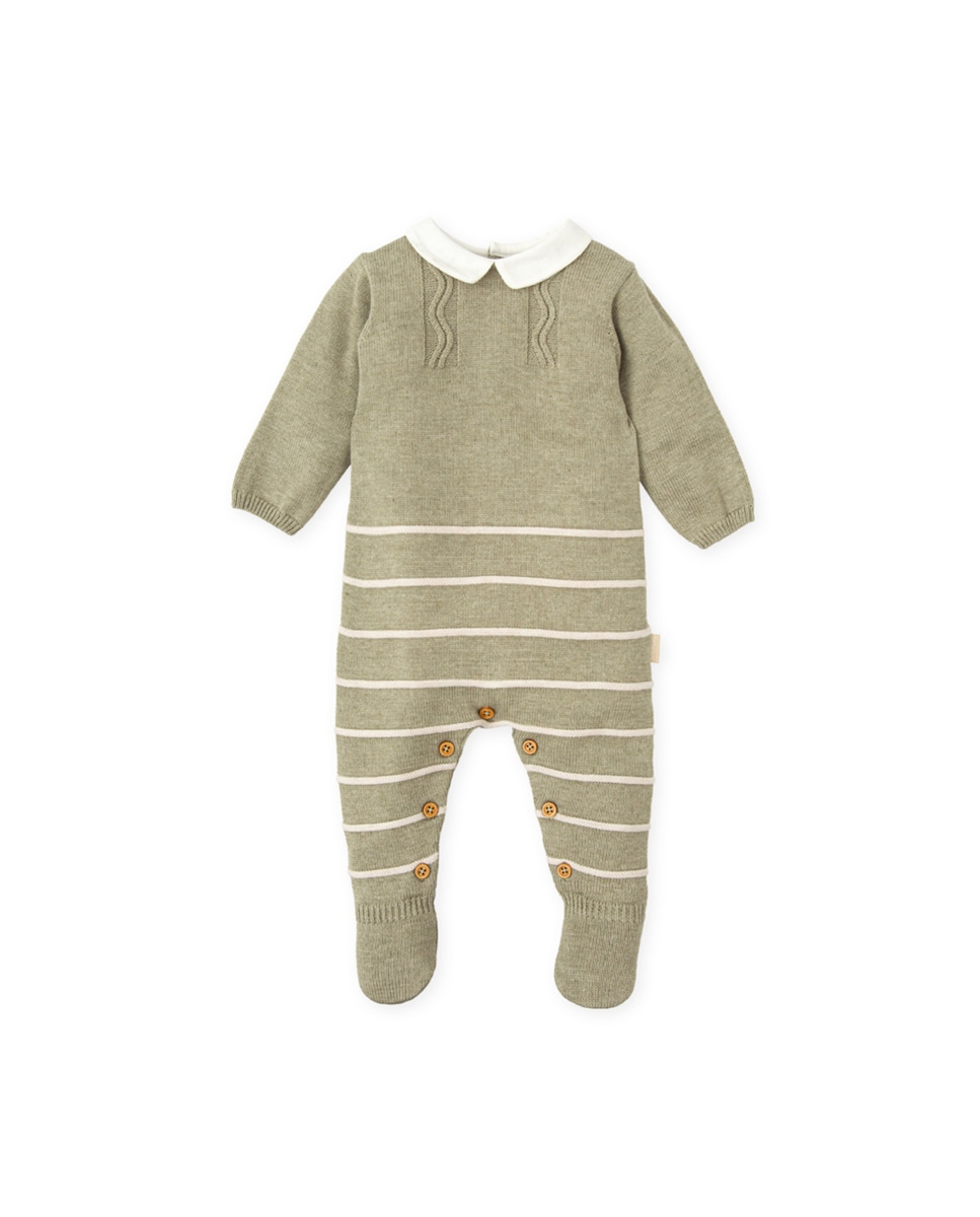 Pelele de bebé niño tricot kaki con rayas