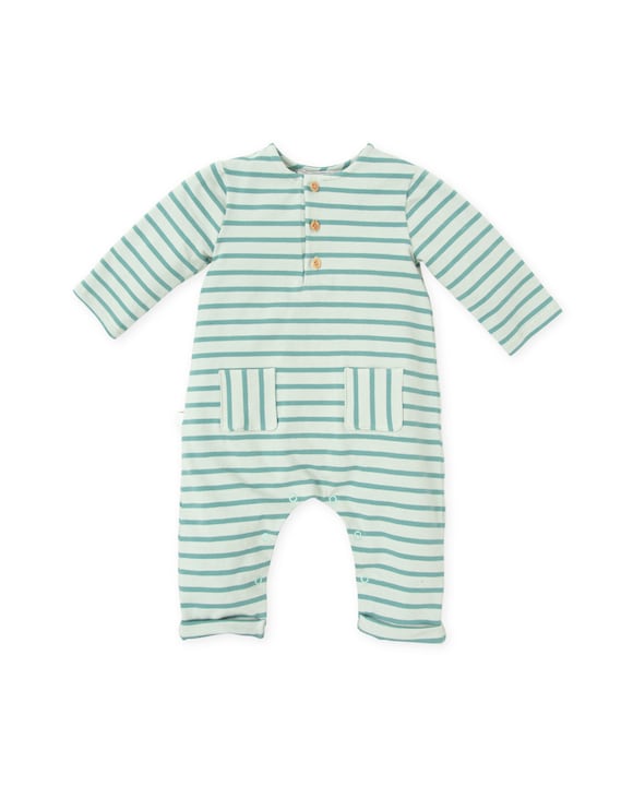 Pelele de bebé niño de manga larga a rayas verde mar