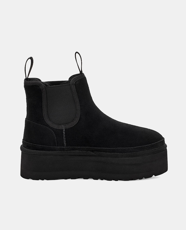 Botas de mujer en negro planos tipo chelsea de ante con plataforma